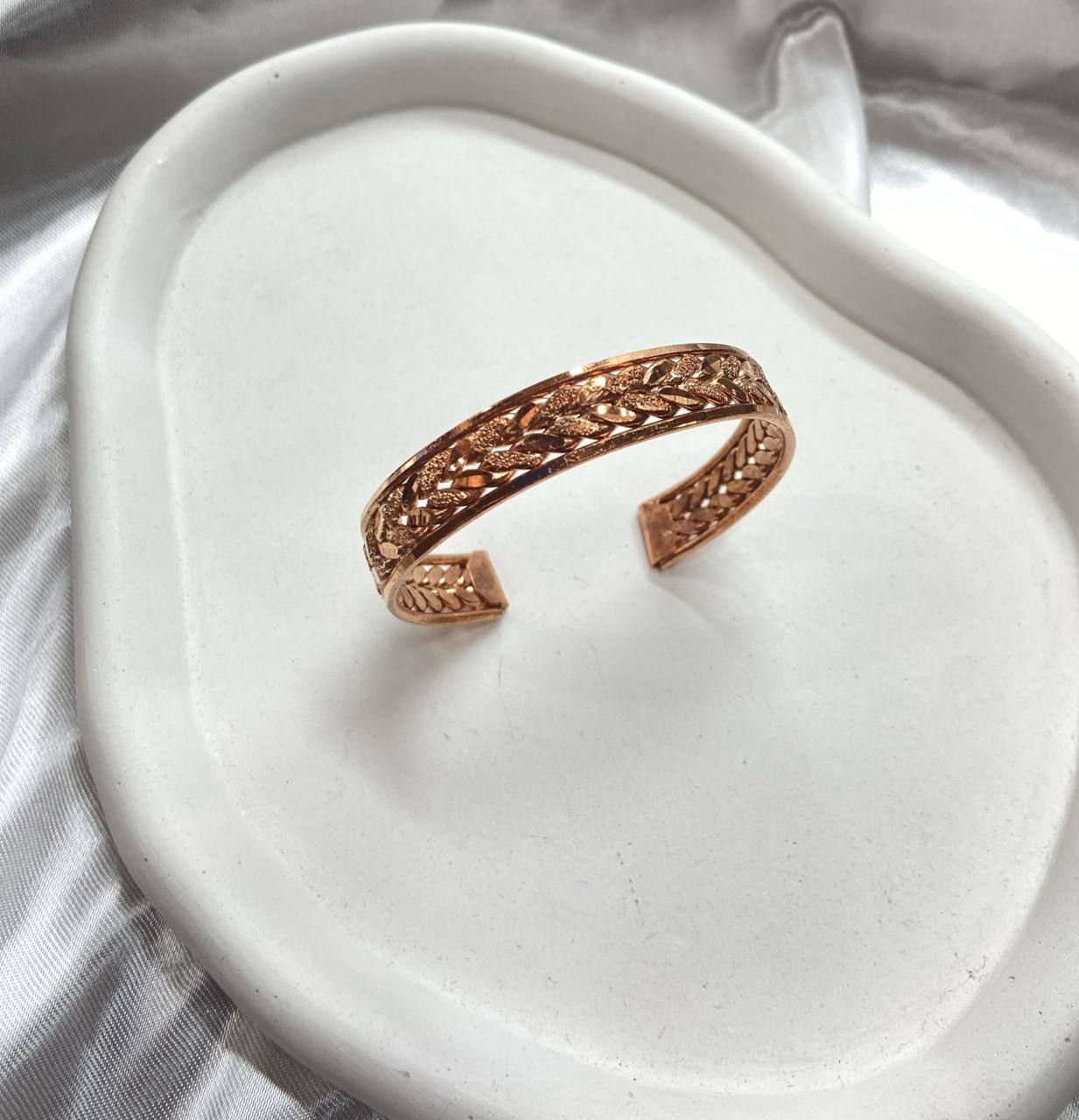 دستبند بنگل استیل طرح بافت برگ – رنگ مسی براق۸۵٬۰۰۰ 5%