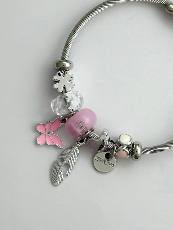 دستبند پاندورا استیل با مهرهها و آویزهای قلب و ستاره – ترکیب صورتی و نقرهای۱۹۵٬۰۰۰ 5%