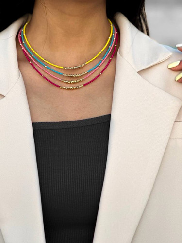 گردنبند چندرشتهای مهرهای رنگی با المانهای طلایی – طراحی مینیمال شاد و تابستانی۲۷۹٬۰۰۰ 10%