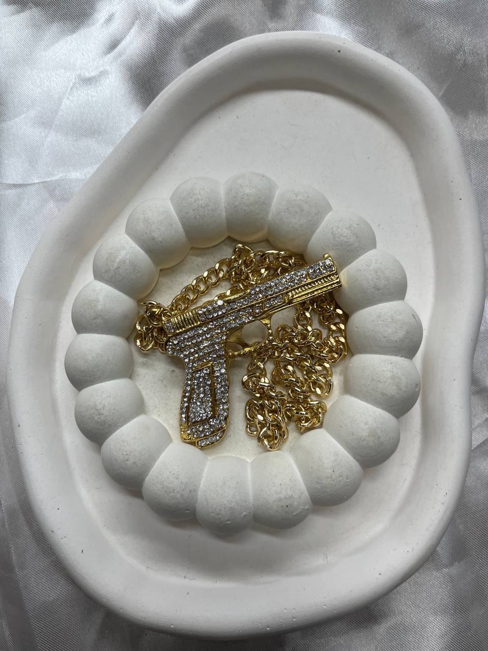 گردنبند زنجیری با پلاک تفنگ نگینکاری شده آبکاری طلایی۱۷۵٬۰۰۰ 5%