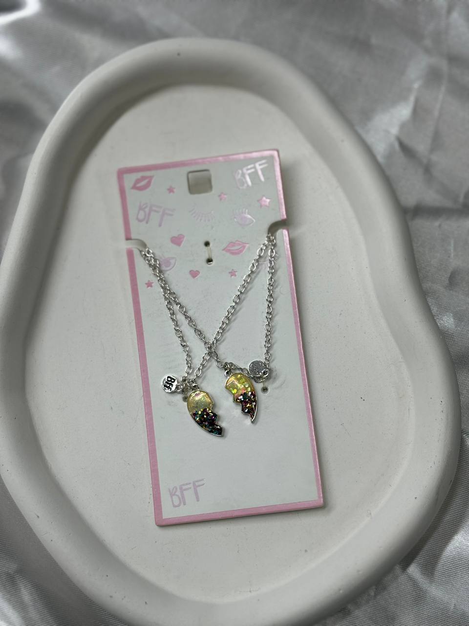 گردنبند تکتکه قلب کامل براق طرح Best Friends با آویز BFF – مدل مرواریدی زرد۱۱۰٬۰۰۰ 5%