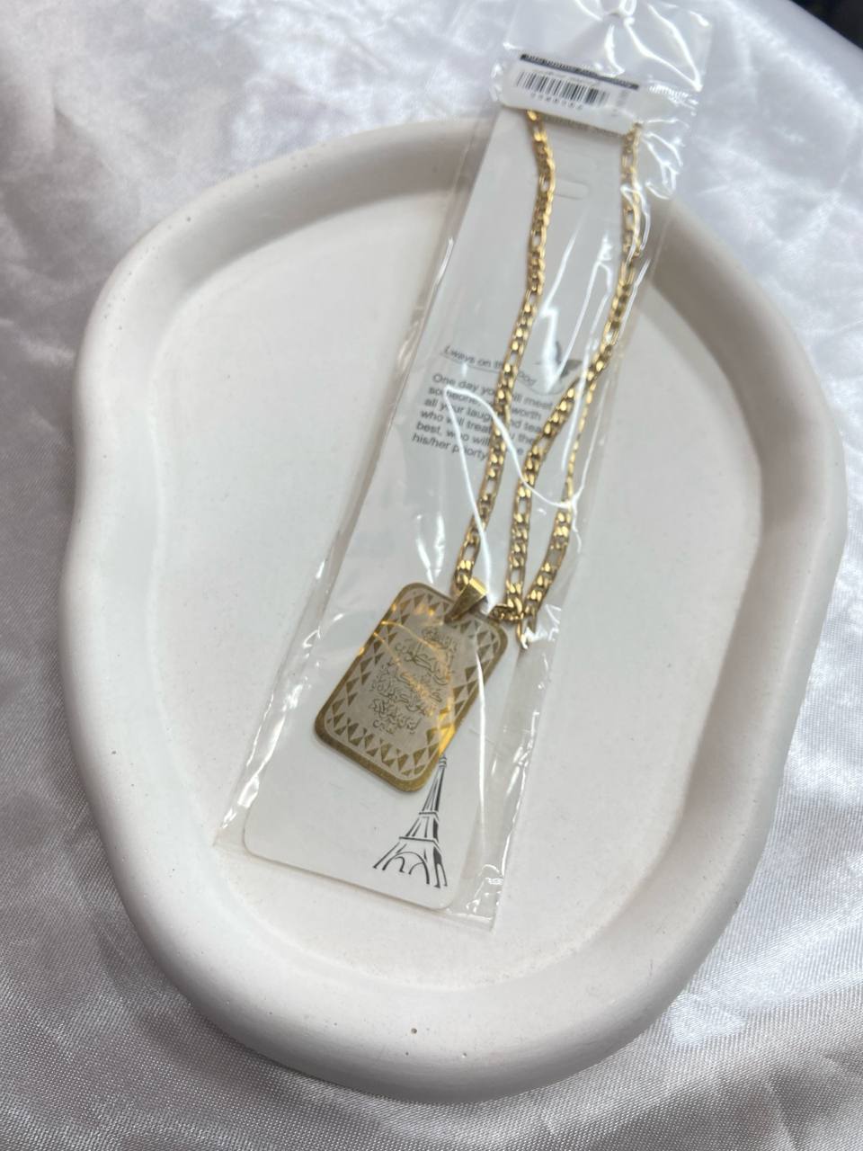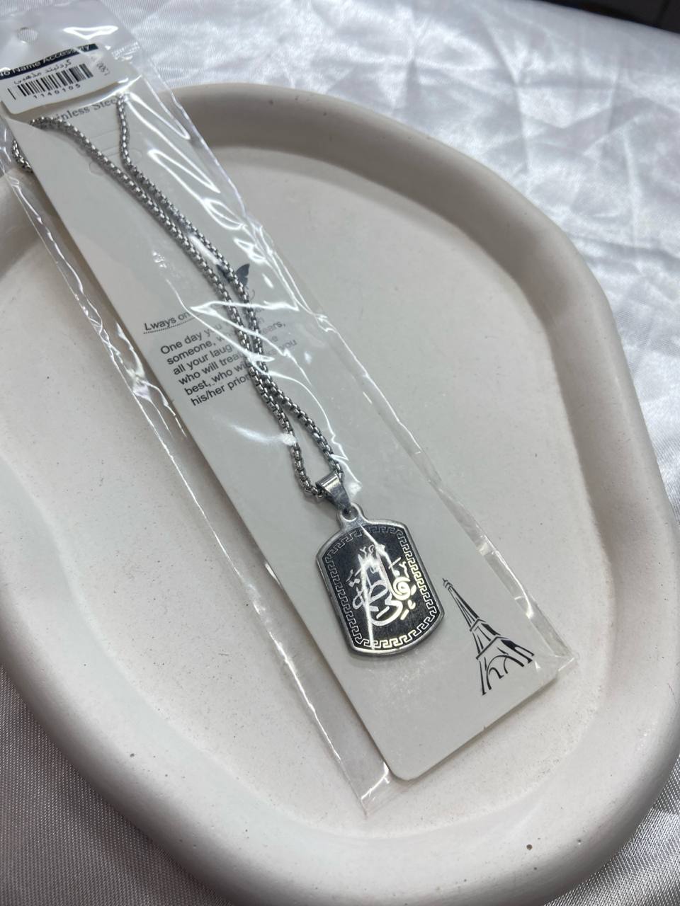 گردنبند استیل یونسکس – زنجیر نقرهای با پلاک مستطیل حکاکی خطاطی مذهبی۱۵۰٬۰۰۰ 5%