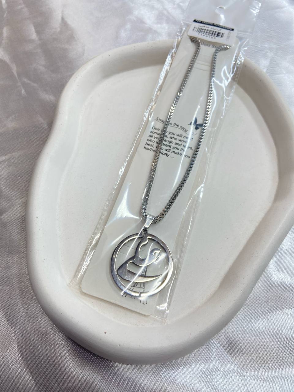 گردنبند استیل یونسکس – زنجیر نقرهای با پلاک دایرهای برشخورده خطاطی مذهبی۱۵۰٬۰۰۰ 5%