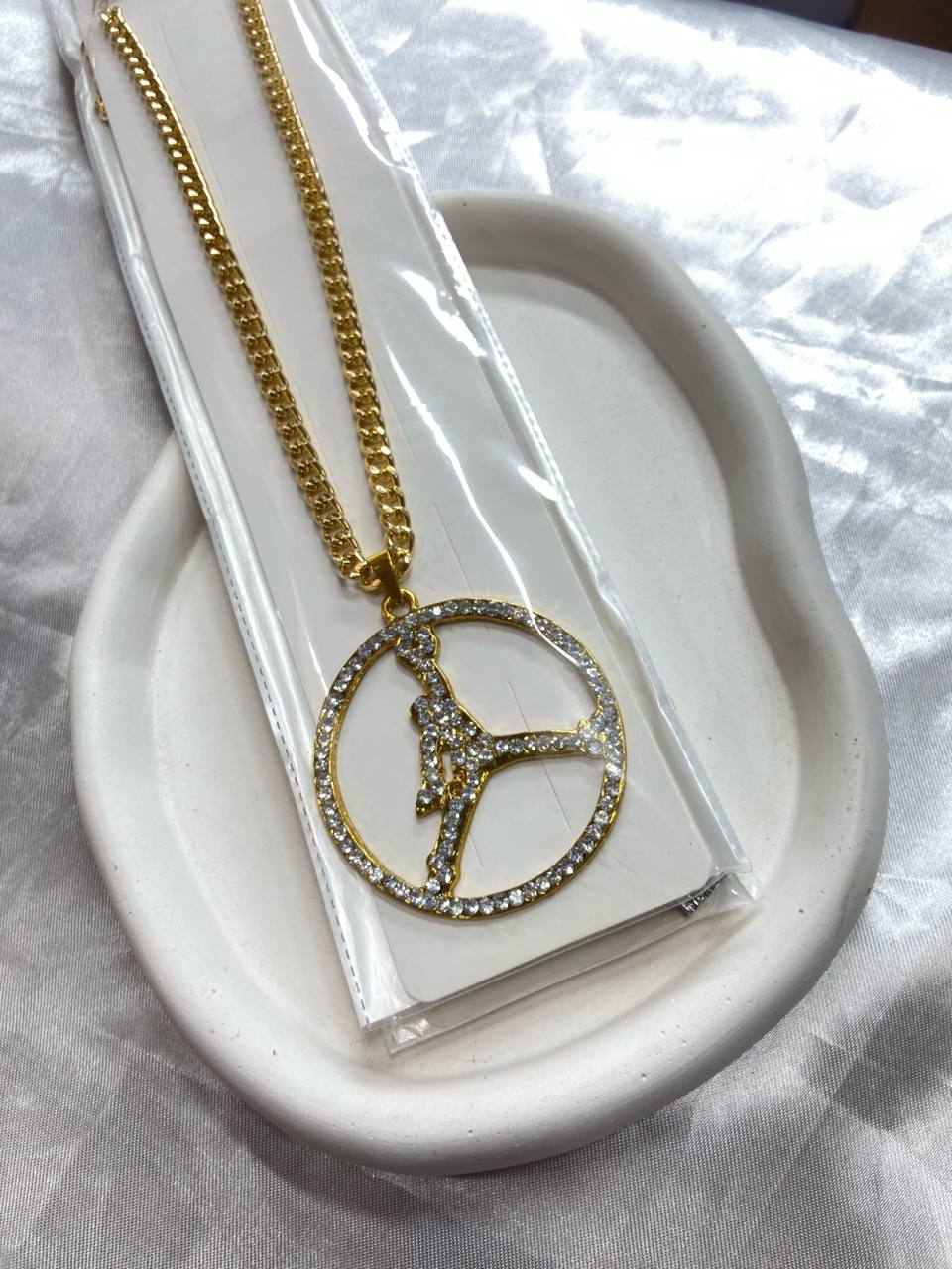 گردنبند زنجیری با پلاک دایرهای طرح جامپمن نگینکاری شده آبکاری طلایی۱۷۵٬۰۰۰ 5%