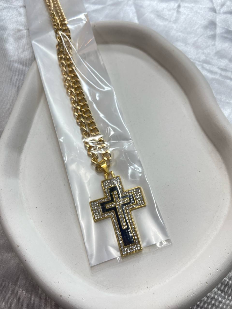 گردنبند استیل یونسکس – پلاک صلیب طلایی نگیندار با لایه داخلی مشکی۱۷۵٬۰۰۰ 5%