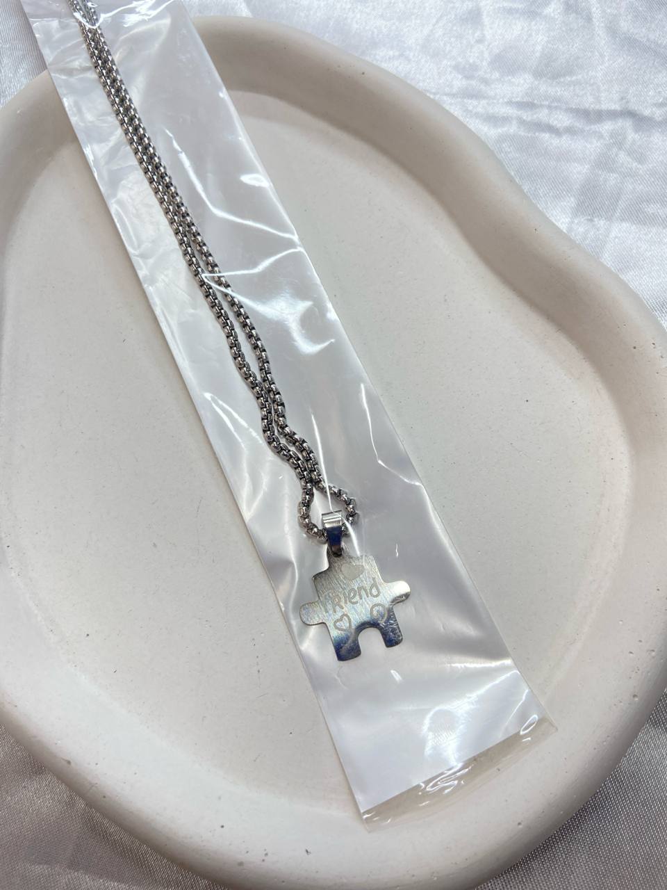 گردنبند استیل یونسکس – پلاک پازل نقرهای با حکاکی “Friend”۱۴۵٬۰۰۰ 5%