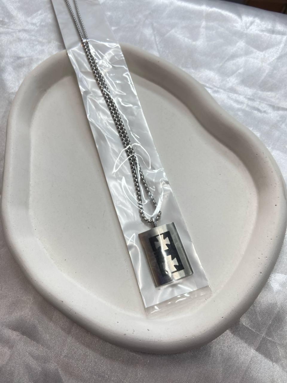 گردنبند استیل یونسکس – آویز تیغ اصلاح نقرهای مات با جزئیات سیاه حکشده۱۴۵٬۰۰۰ 5%