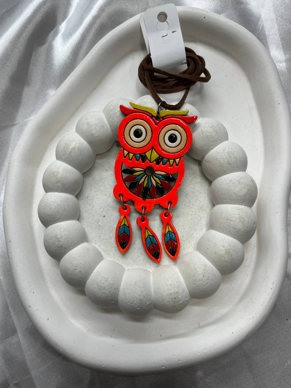 گردنبند طرح جغد قرمز با آویز پرهای رنگی – مدل فانتزی بوهمین۳۵٬۰۰۰ 5%