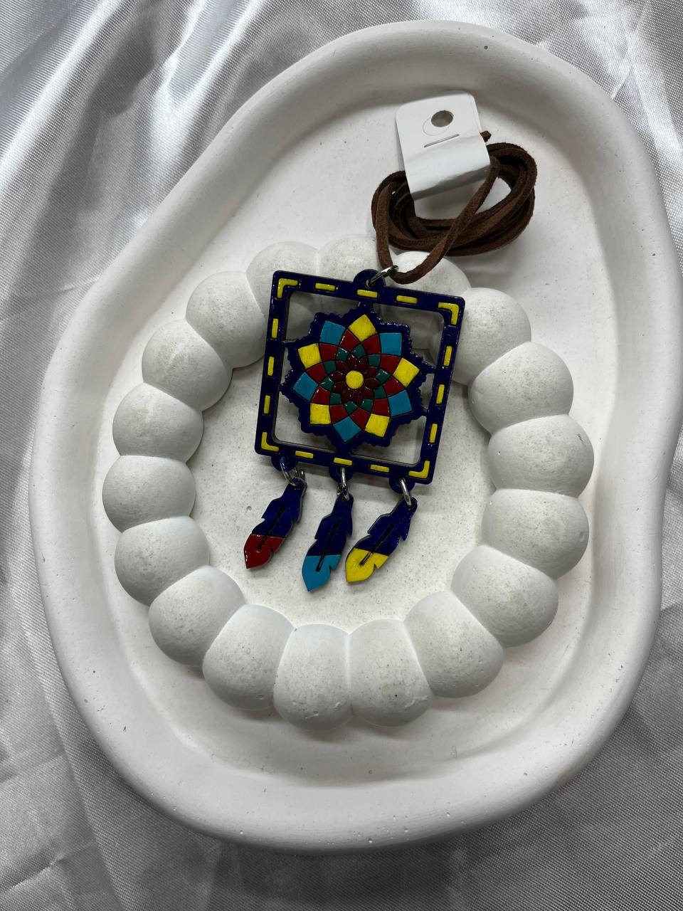 گردنبند طرح هندسی گل هشتپر با آویز پرهای رنگی – مدل هنری بوهمین۳۵٬۰۰۰ 5%