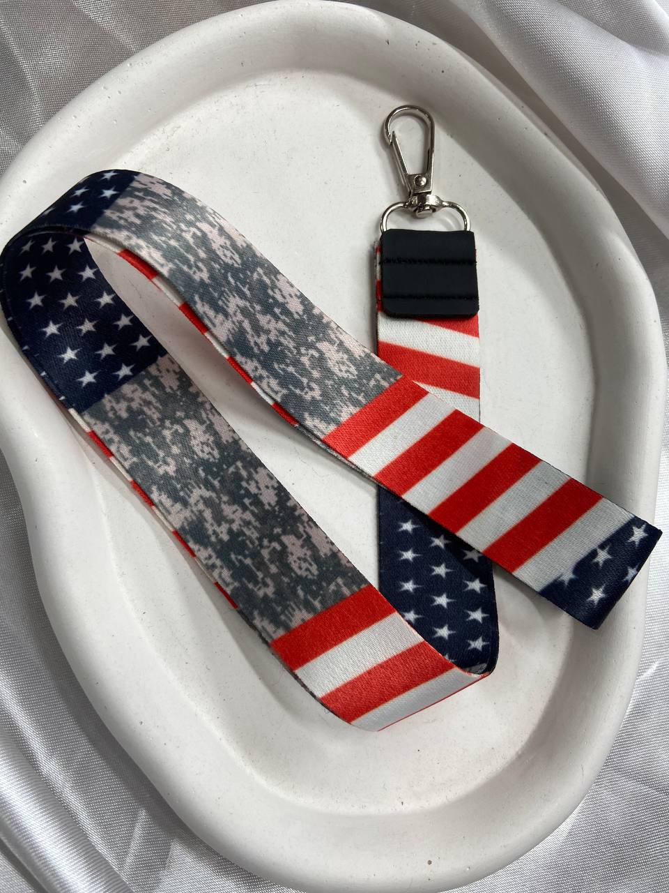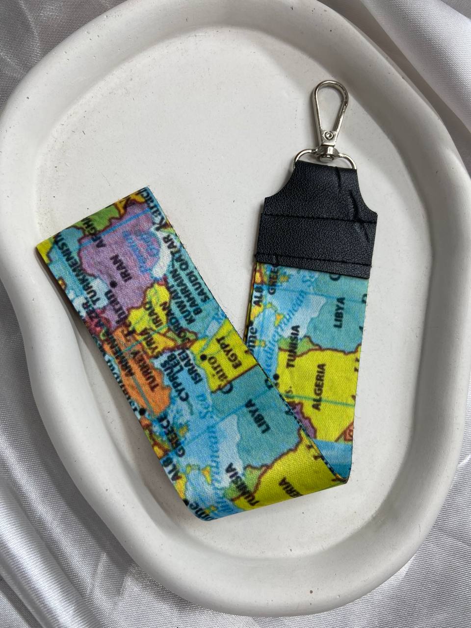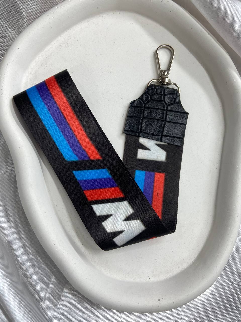 بند جاکلیدی پارچهای با سرکلیدی فلزی و چرم مشکی در طرح متنوع
