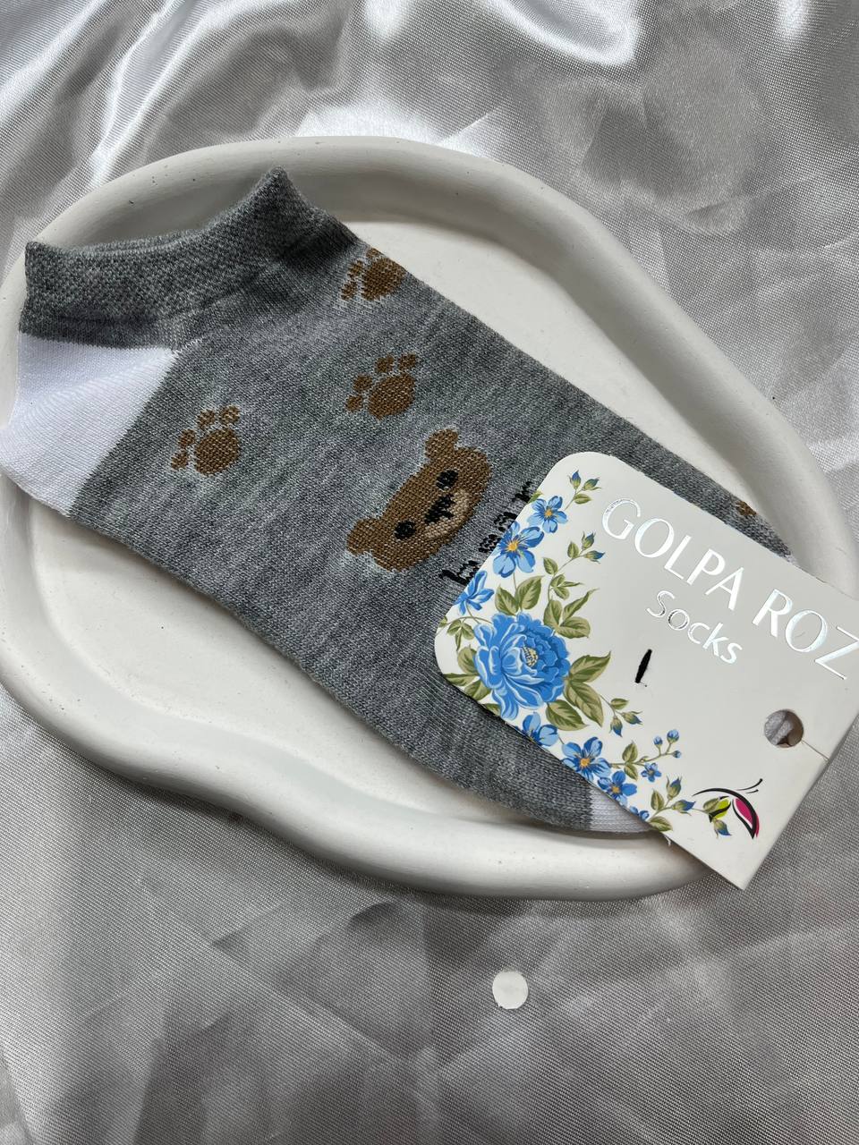 جوراب ساق کوتاه زنانه با طرح خرس و ردپا – موجود در رنگهای زرد و خاکستری