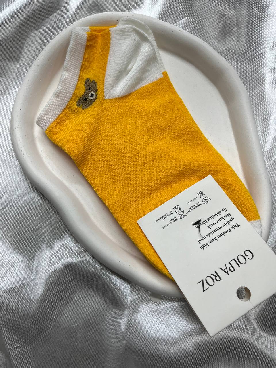 جوراب ساق کوتاه زنانه زرد با طرح خرس – موجود در مدل تکخرسی و سهخرسی