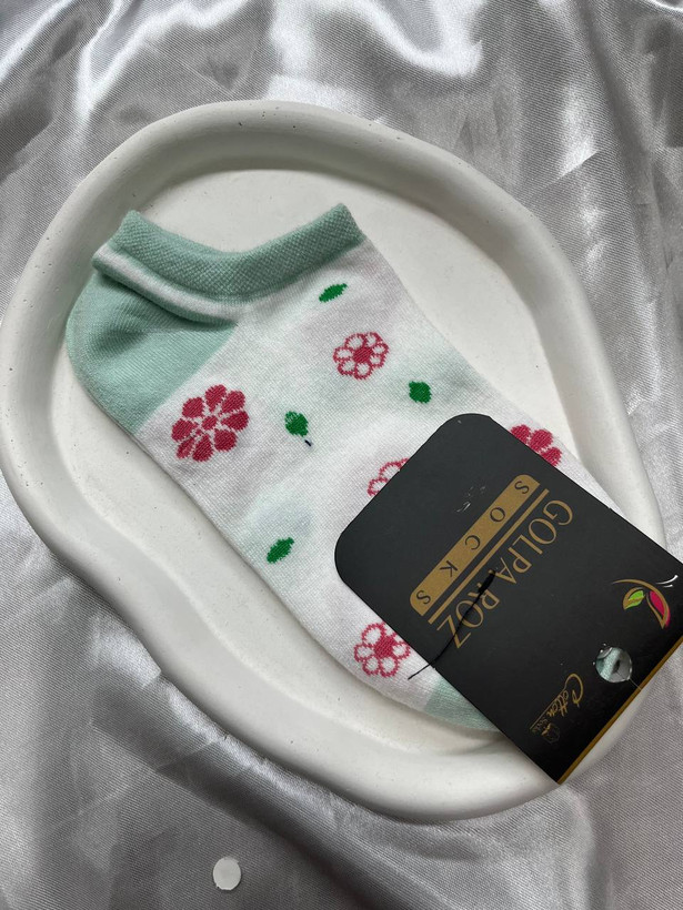 جوراب ساق کوتاه زنانه سبز و سفید با طرح گل قرمز – سه مدل مختلف