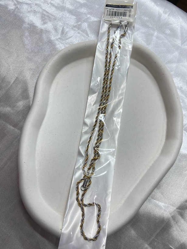 ست گردنبند دستبند طنابی استیل یونسکس – دورنگ طلایی و نقره ای براق