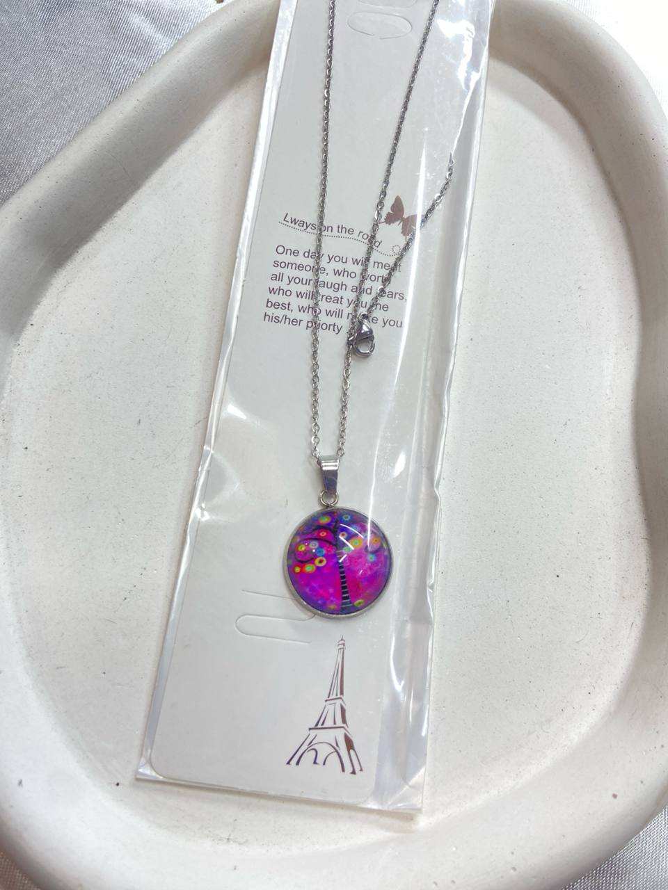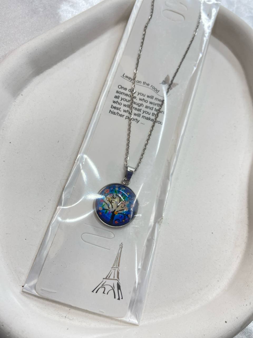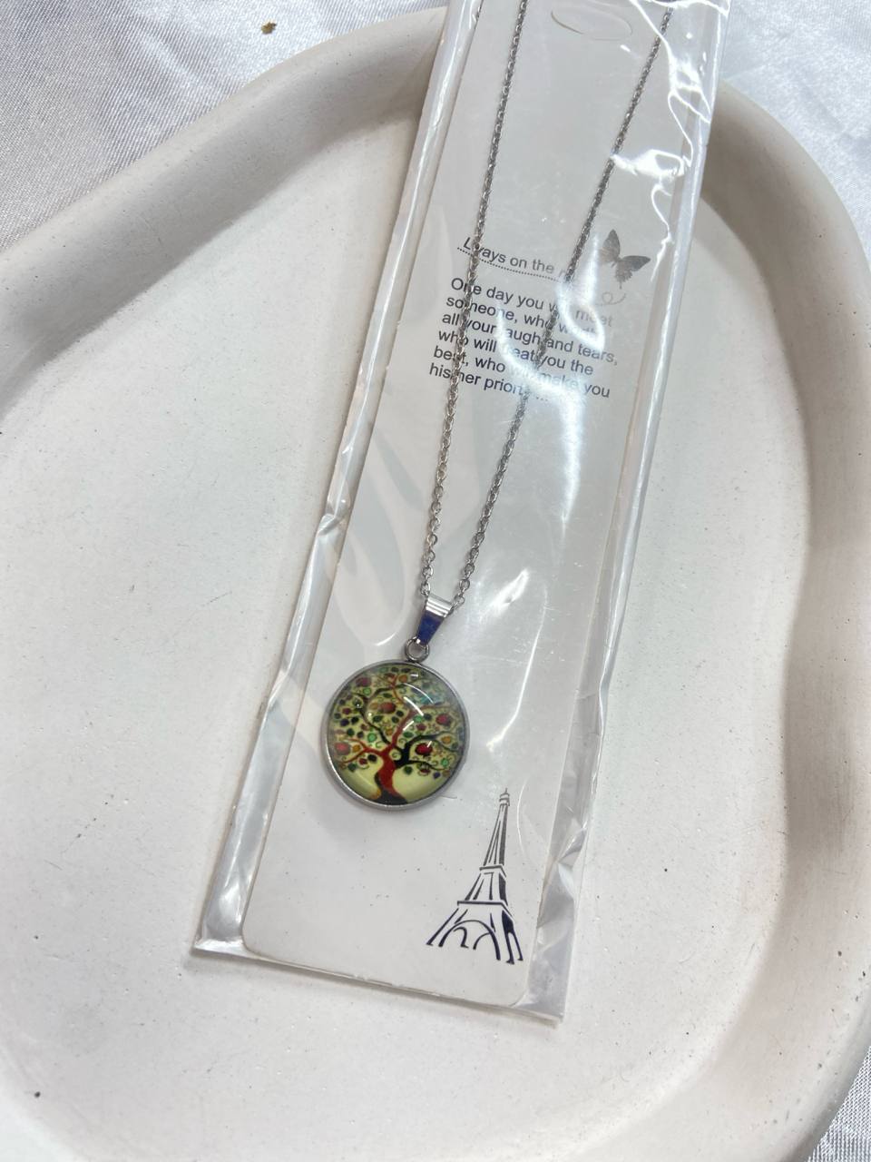 گردنبند استیل یونسکس – آویز گرد مد و فشن (طرحهای درخت زندگی، فانتزی و کهکشانی)