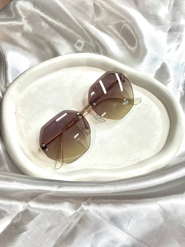 عینک آفتابی بدون فریم با لنز چندضلعی قهوهای-طلایی گرادیانت UV400