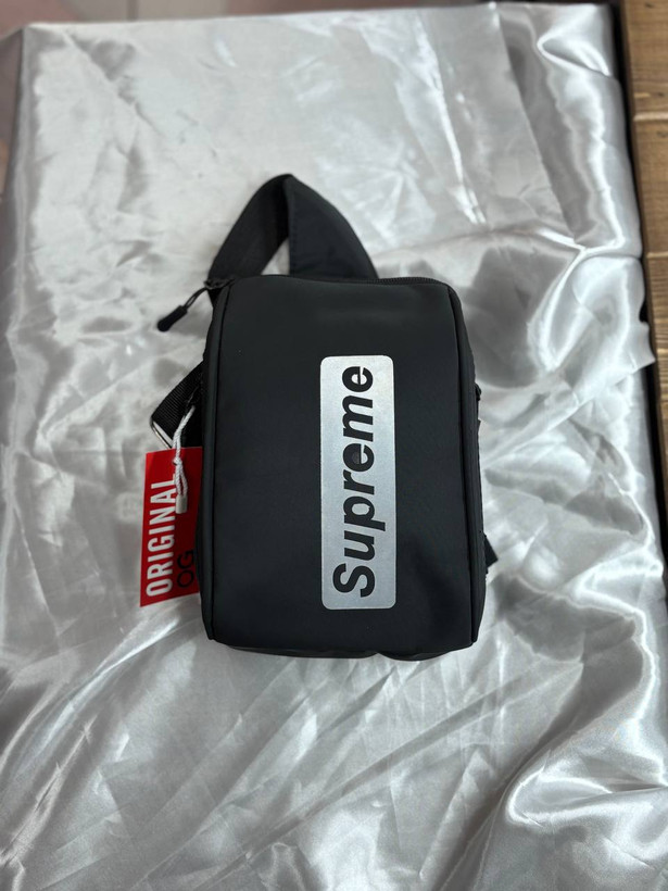 کیف رودوشی/سینهای Supreme – مدل اسپرت مشکی با چاپ نقرهای