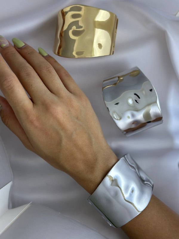 مچبند پهن فلزی موج‌دار – طراحی مدرن لوکس (طلایی و نقره‌ای)