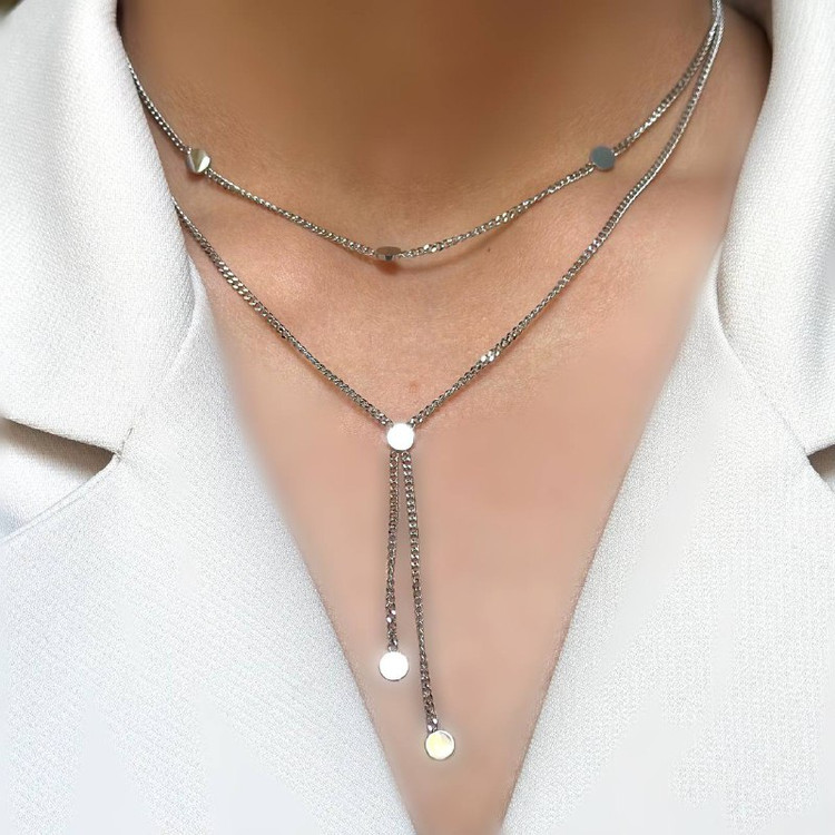 گردنبند دوبل نقرهای با المانهای دایرهای – طراحی مینیمال لوکس