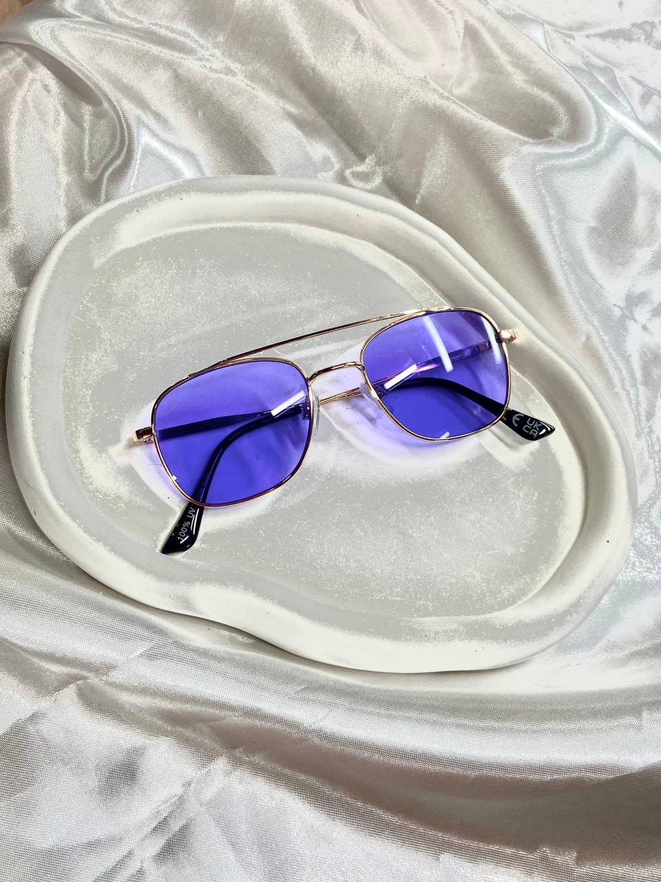 عینک آفتابی فریم طلایی با لنز آبی-بنفش UV400۳۰۰٬۰۰۰ 5%