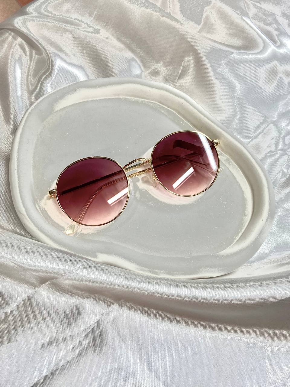 عینک آفتابی گرد با فریم طلایی و لنز گرادیانی صورتی-شرابی UV400۳۰۰٬۰۰۰ 5%