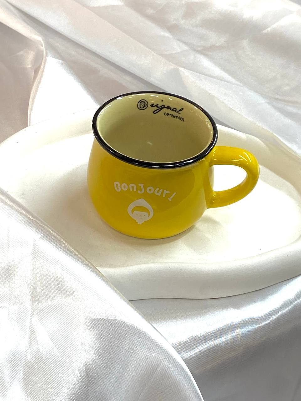 ماگ کوچک سرامیکی شکمدار فانتزی، زرد با طرح کودک و نوشته Bonjour۱۳۵٬۰۰۰ 5%