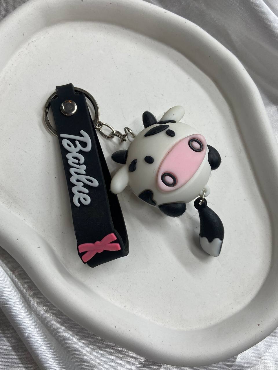 جاکلیدی سیلیکونی طرح گاو فانتزی با بند مشکی نوشته Barbie۴۵٬۰۰۰ 5%