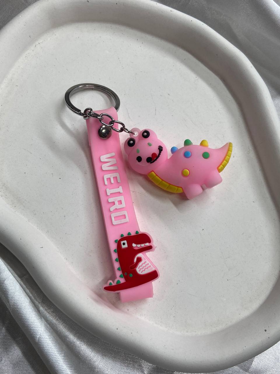 جاکلیدی سیلیکونی طرح دایناسور با بند نوشته WEIRD صورتی سبز و آبی۴۵٬۰۰۰ 5%