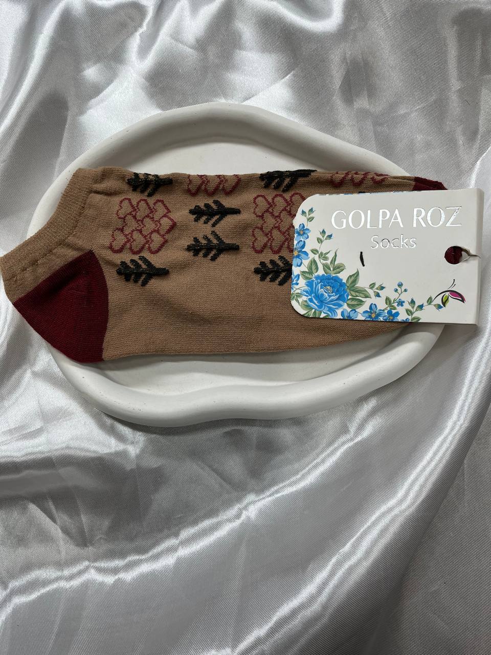 جوراب ساق کوتاه زنانه قهوهای با طرح گل و برگ۳۶٬۰۰۰ 5%