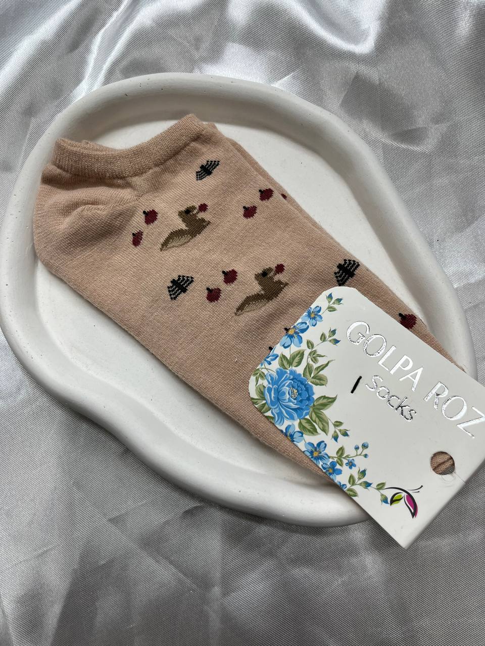جوراب ساق کوتاه زنانه بژ با طرح سنجاب، درخت و میوه۳۶٬۰۰۰ 5%