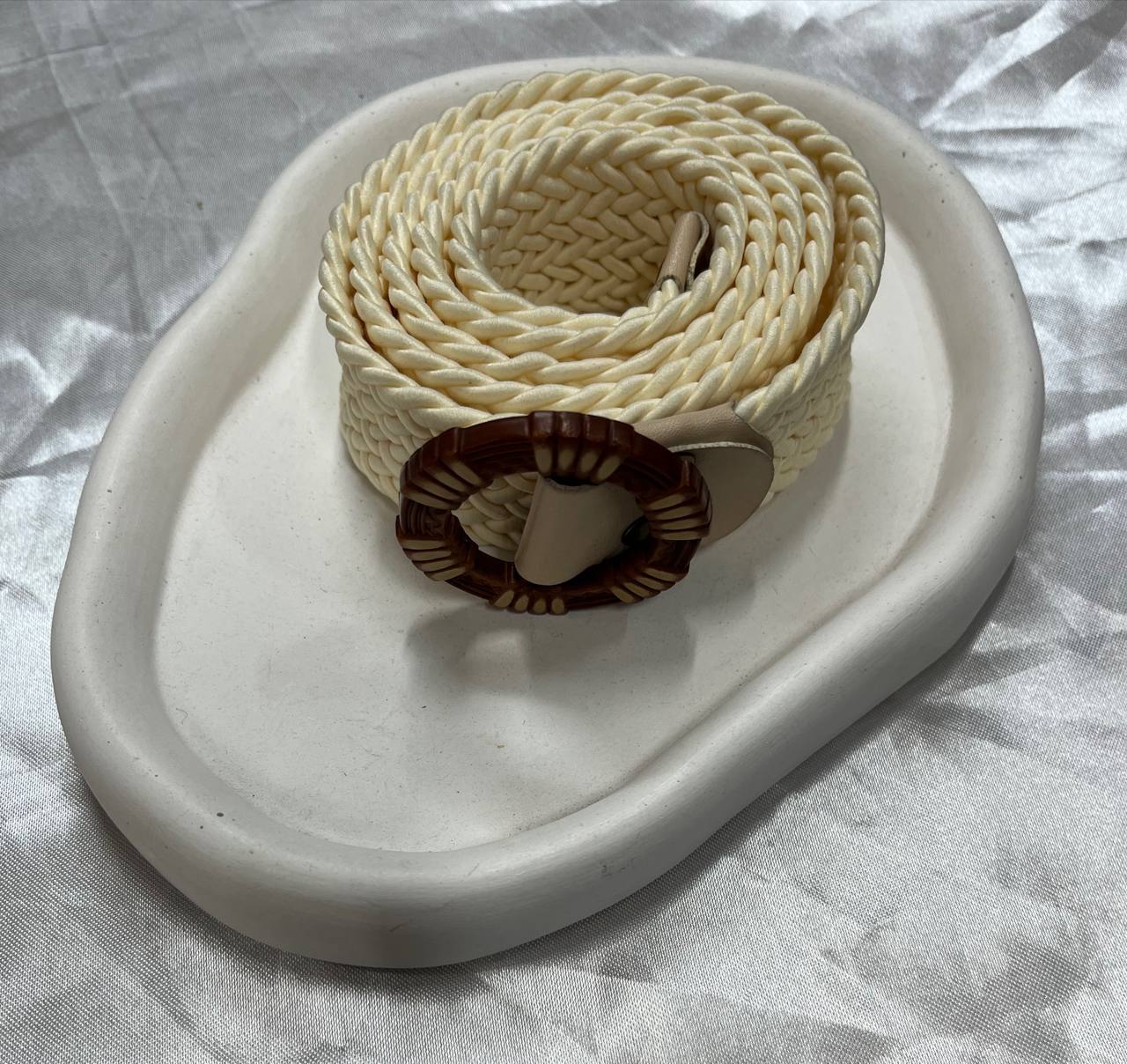 کمربند بافت حصیری کرم – سگک گرد طرح چوب۱۰۰٬۰۰۰ 5%